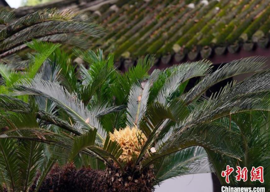 成都杜甫草堂百年鐵樹(shù)開(kāi)花引游人